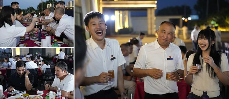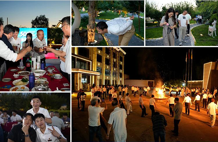 绚烂烟火在夜空中绽放,员工围着篝火即兴起舞,嘉宾也加入其中,