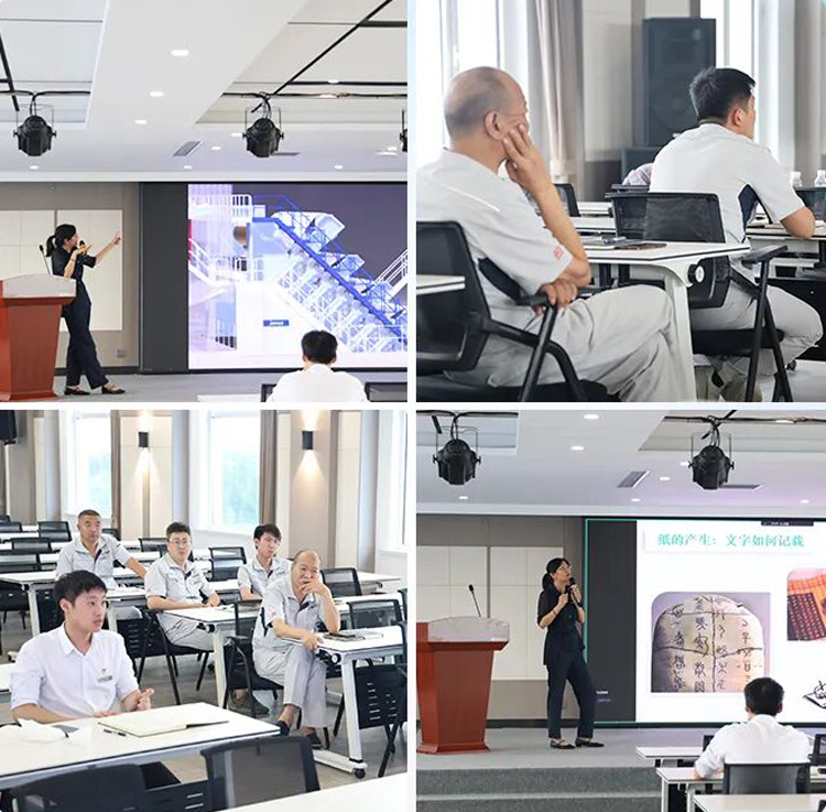 理论讲解后,更有实操演示与全员实操训练环节!专家亲自示范造纸设备操作、滑石粉添加配比控制等关键步骤,手把手指导每一位同事动手实践。大家积极参与,在操作中验证理论知识,在实践中解决实际问题,现场学习氛围热烈高涨。